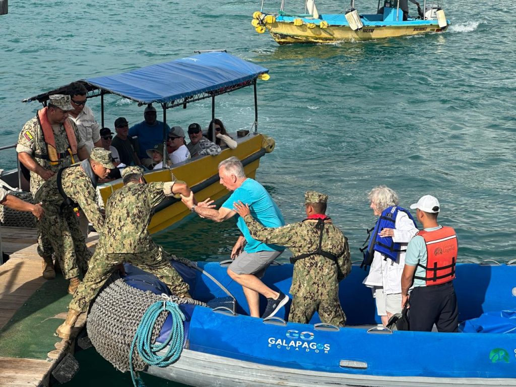 Personal de la Armada del Ecuador rescató a 13 turistas de Estados Unidos y Canadá, en la Isla Española – Galápagos, trasladandolos de manera segura a la Isla San Cristóbal. El rescate fue realizado con éxito a través de un Plan SAR (Búsqueda y Rescate) tras un incidente en el que un barco de turismo quedó varado en dicho lugar.