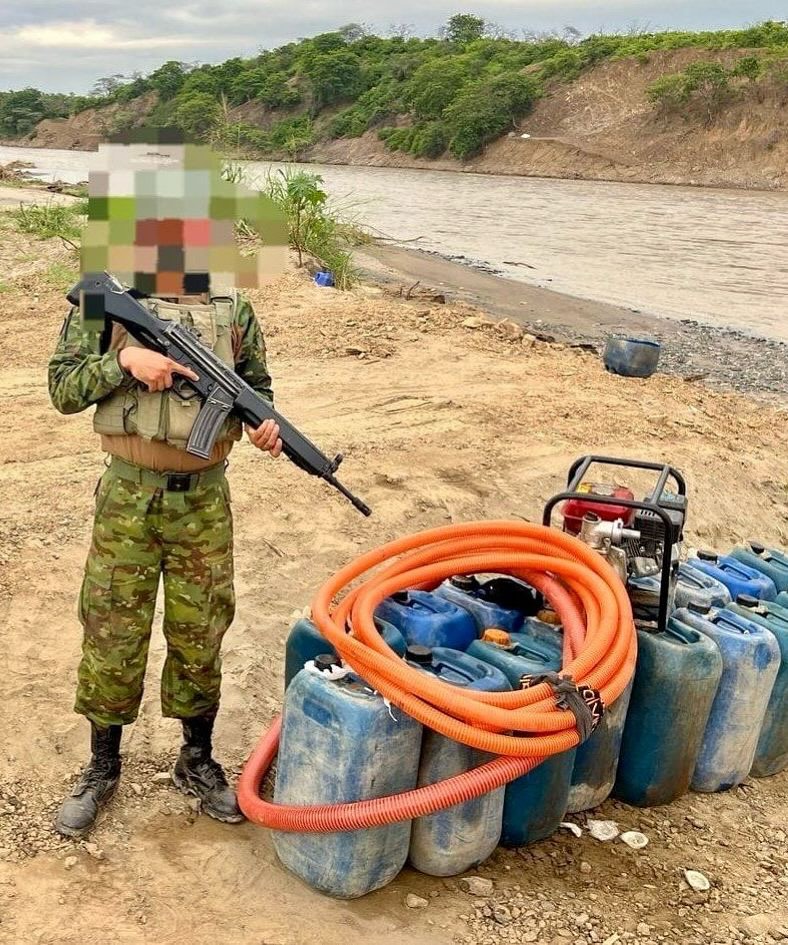 Durante un patrullaje, el personal militar detectó esta actividad ilegal y procedieron al decomiso del material, que ya fue entregado a las autoridades competentes.