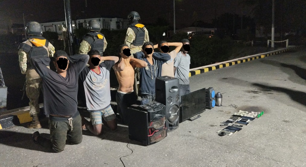 La Dirección Nacional de los Espacios Acuáticos, a través del Comando de Guardacostas con el empleo de unidades navales realizó la aprehensión de 06 presuntos delincuentes en el Golfo de Guayaquil, mismos que habían asaltado a los comuneros de Puerto Libertad, entre las evidencias encontradas se detallan: