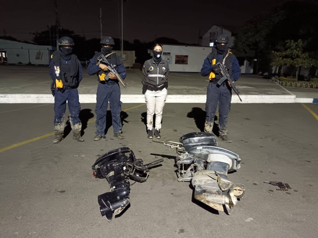 El Bloque de Seguridad y el Comando de Guardacostas de la Armada del Ecuador llevaron a cabo una acción de orden interno en la comuna Puerto Tamarindo de la isla Mondragón, golfo de Guayaquil, donde se ejecutaron inspecciones a embarcaciones y se encontraron motores de dudosa procedencia y no regularizados, una pistola y seis proyectiles.