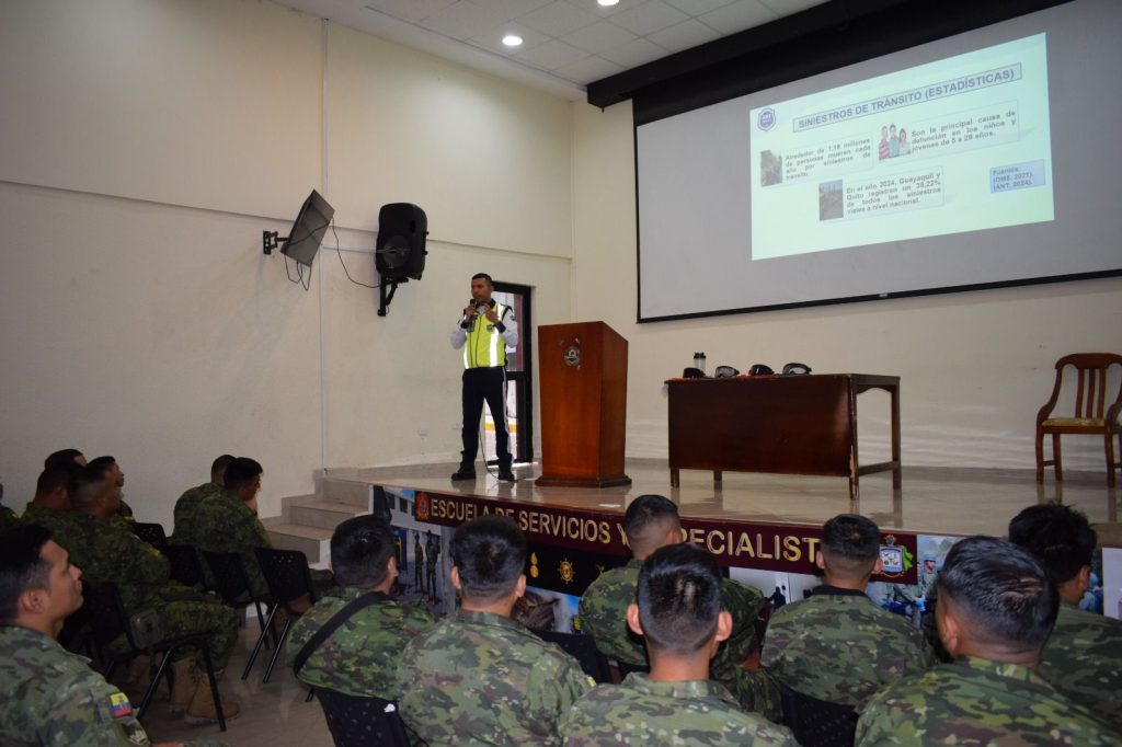 El personal militar de la Escuela de Servicios y Especialistas del Ejército participó en una conferencia organizada por la Agencia Nacional de Tránsito (ANT), cuyo objetivo fue concienciar sobre las causas de una conducción insegura, como la falta de educación, imprudencia y distracción. La actividad resaltó la importancia de cumplir con las normativas de tránsito para garantizar la seguridad de conductores y peatones.