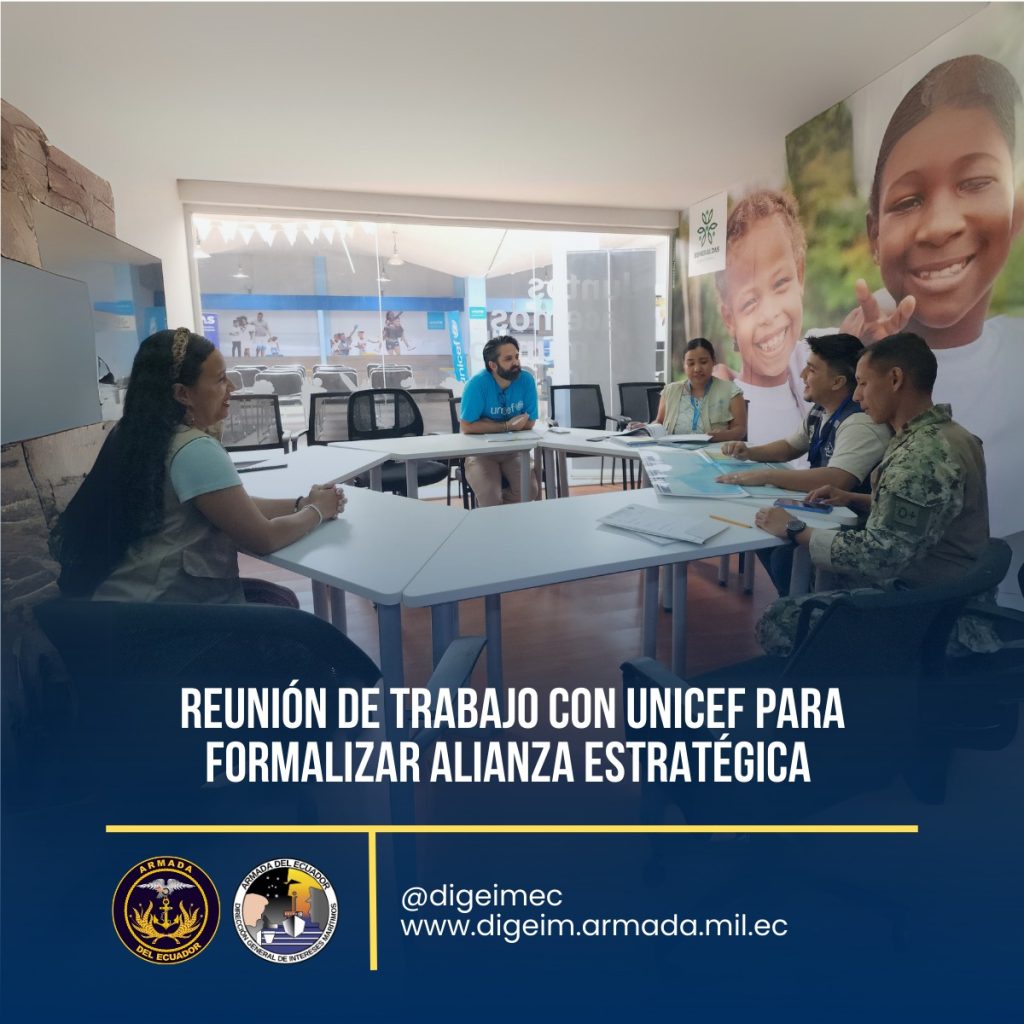 La #DIGEIM se reunió con @UNICEF_ECUADOR para formalizar una alianza y llevar a cabo el proyecto «Guardianes del Mar y de los Intereses Marítimos». Este trabajo en conjunto con @HIASEcuador busca concienciar y fortalecer la importancia de nuestros mares en comunidades vulnerables mediante el programa PROGIM.