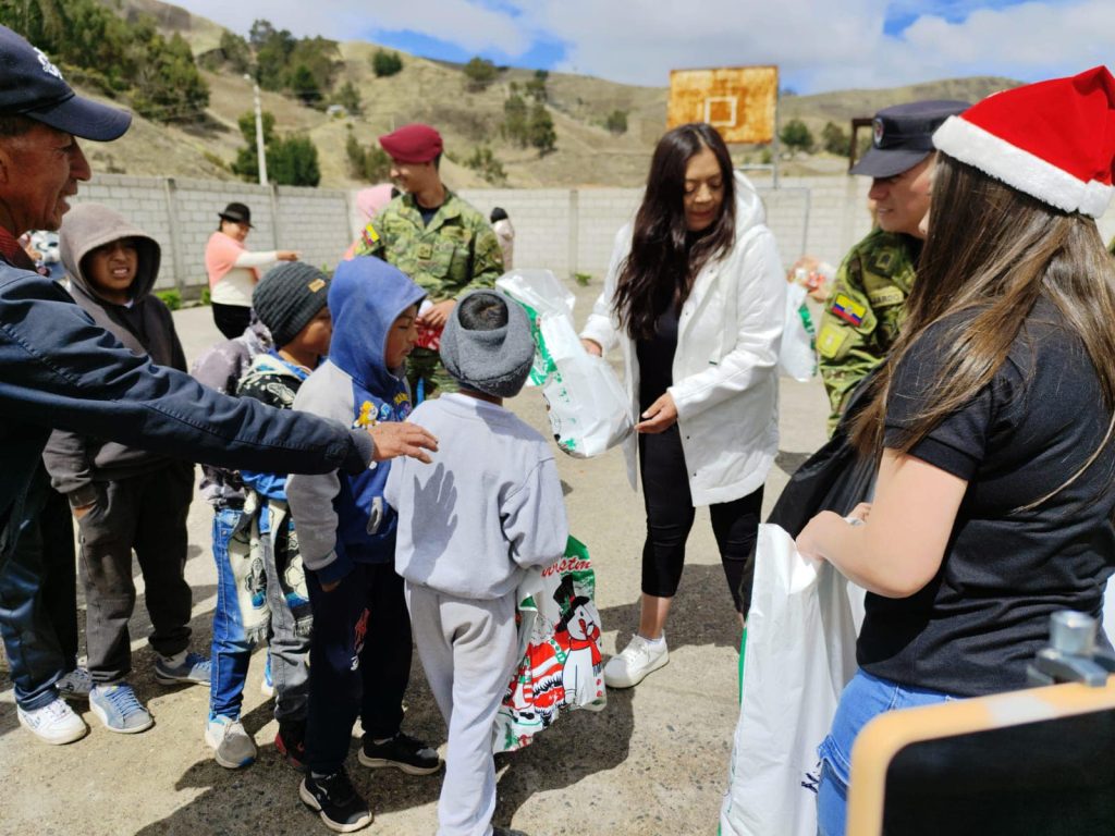 La Brigada de Fuerzas Especiales N.° 9 Patria y la Escuela de Fuerzas Especiales N.º 9 Capitán Alejandro Romo Escobar agasajaron a los niños y familias de la comunidad Tigua Chami de la parroquia #Zumbahua y a la comunidad Cobo Grande de la parroquia #Cusubamba. Con gran entusiasmo y alegría, los asistentes recibieron caramelos y disfrutaron de una presentación de perros amaestrados. Este evento reflejó el compromiso de los soldados de fuerzas especiales con su comunidad, brindando un momento de alegría en Navidad.