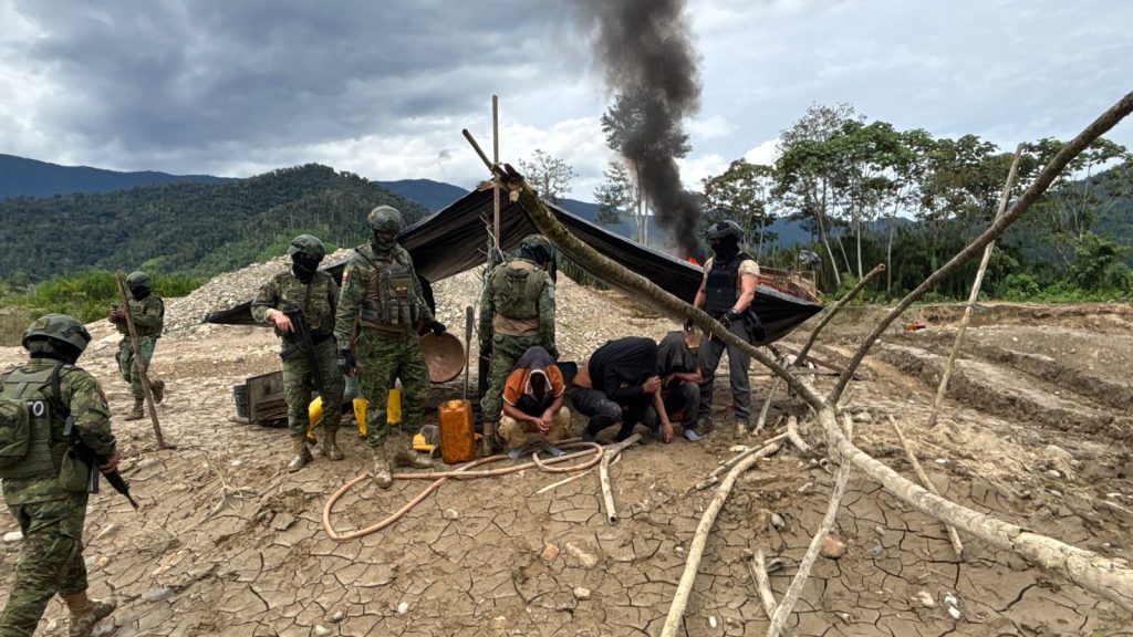 Las Fuerzas Armadas ejecutaron una operación en el cantón Gualaquiza para combatir la extracción de minerales. En la intervención se decomisó una retroexcavadora, dos motores de agua, ochocientos galones de diésel y todo un campamento con utensilios de minería ilegal.