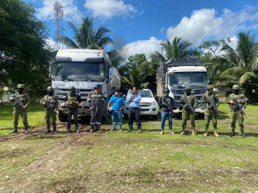 Durante operaciones de control y seguridad hidrocarburífera en el sector Pacayacu, cantón #LagoAgrio, el Bloque de Seguridad a través de las Fuerzas Armadas del Ecuador, obtuvieron los siguientes resultados: 10.000 galones de gasolina blanca decomisados, 03 personas aprehendidas, 02 camiones, dinero en efectivo, 02 acoples clandestinos, 03 terminales móviles y 08 bultanes. Se realizaron los procedimientos de ley correspondientes. Estas acciones refuerzan el compromiso de las Fuerzas Armadas en la lucha contra las actividades ilícitas y en defensa de los recursos estratégicos del Estado.