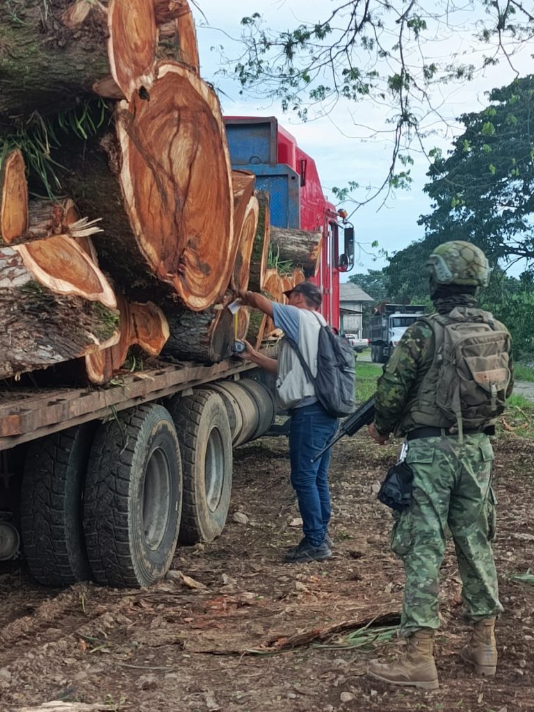 Efectivos militares ejecutaron operaciones militares en la Parroquia #LaUnion del cantón #Babahoyo, donde se detectaron cinco vehículos tipo mula, una plataforma y una retroexcavadora que estaban talando árboles de la zona. De acuerdo a un técnico de medio ambiente, estos tienen alrededor de 135 años. Al consultar sobre el permiso para realizar estas labores se presentó un documento que corresponde a otro sector de #LosRíos. Como resultado de la operación se decomisó el producto forestal (Rollizo de la especie Samán) con un volumen de 56,82 m3. Las evidencias fueron entregadas a las autoridades competentes para los trámites de ley correspondientes.