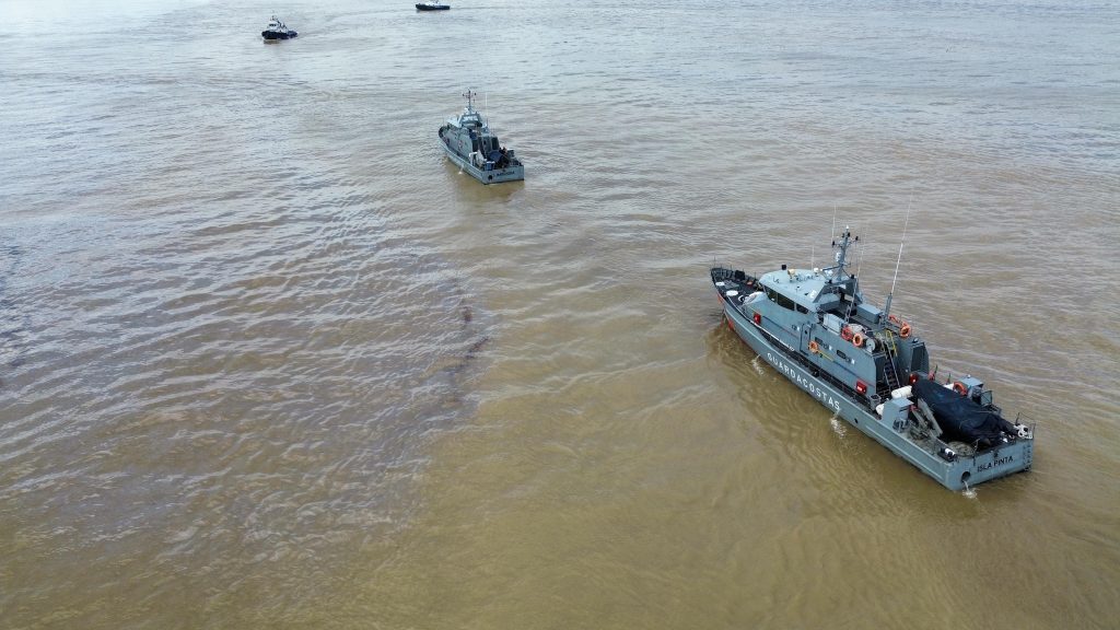 Las Fuerzas Armadas del Ecuador refuerzan sus operaciones para controlar la mancha de crudo en Esmeraldas, desplegando medios aéreos, lanchas guardacostas, barcazas, remolcadores, embarcaciones y drones. Este esfuerzo busca garantizar una respuesta inmediata y efectiva ante la emergencia ambiental.