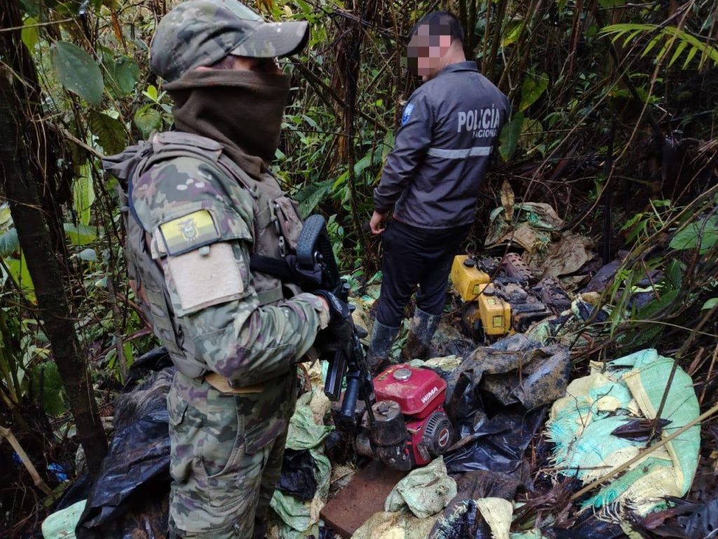 El Ejército Ecuatoriano, a través del Grupo de Caballería Mecanizada N.º 36 Yaguachi, ejecutó operaciones de reconocimiento y control en el sector de Buenos Aires, en la Zona Minera Norte, logrando desmantelar una procesadora de material aurífero que estaría ligada con la minería ilegal en donde encontraron el siguiente material: 1 procesadora, 5 cilindros amalgamadores, 4 piscinas de sedimentación, 9 tanques de agitación, 2 trituradoras, 8 motores, 3 poleas, 9 cambuches, 1 motor industrial, 10 kilos de cianuro, 6 kilos de viruta de zinc. El material encontrado fue inhabilitado por parte del personal militar en coordinación con la Agencia de Regulación y Control Minero.