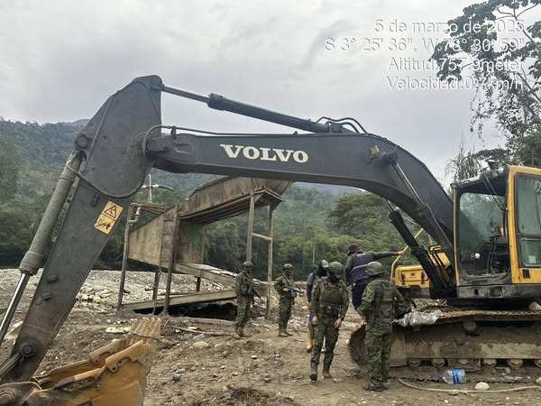 Personal militar en apoyo a la ARCOM, realizó una operación contra la minería ilegal en la comunidad #Roldos, parroquia Mercedes Molina, Cantón Gualaquiza, obteniendo los siguientes resultados: una excavadora inhabilitada, clasificadoras tipo Z inhabilitadas y campamento temporal inhabilitado. Las evidencias quedaron bajo procedimiento de los entes competentes.