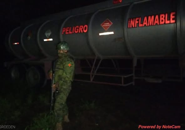 El Batallón de Ingenieros N.° 69 Chimborazo detectó una perforación ilegal en el Poliducto Esmeraldas-Santo Domingo, sector Agoeden. Se incautó un tanquero con 40 mil litros de combustible extraídos ilícitamente. Las evidencias fueron entregadas a las autoridades, para los trámites de ley correspondientes.