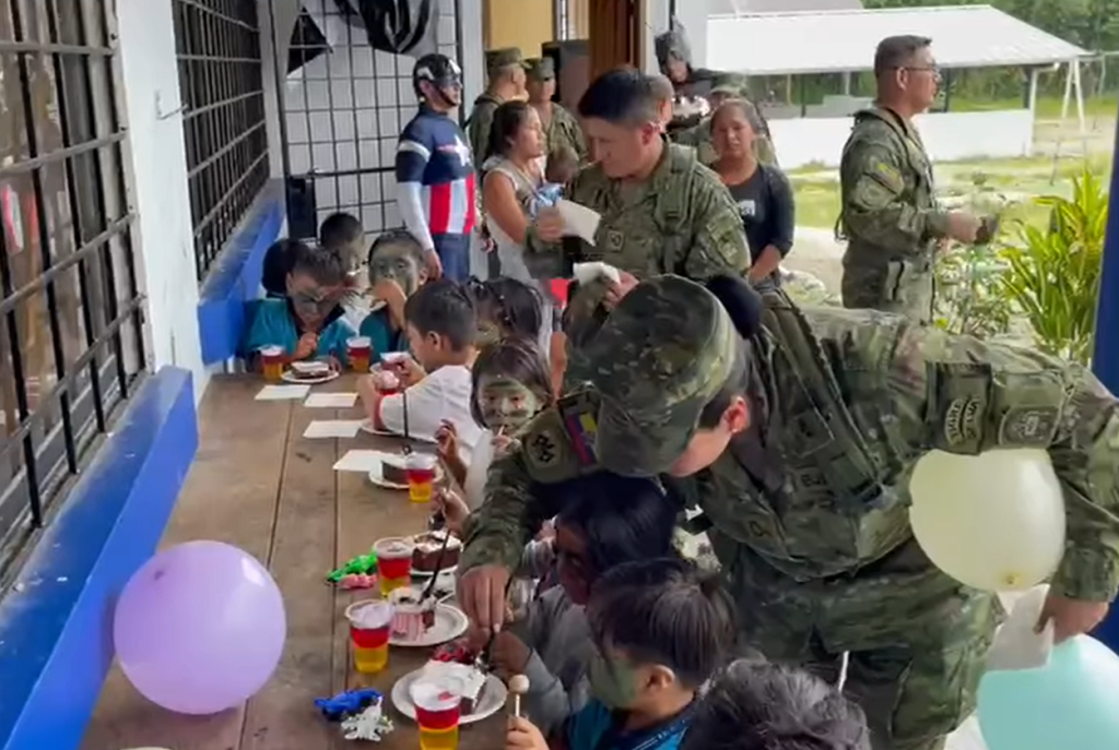 El Ejército Ecuatoriano organizó una jornada de apoyo en la Unidad Educativa Intercultural “San Jacinto”, ubicada en la parroquia Madre Tierra, Puyo, donde participaron aproximadamente 200 niños y niñas. Durante el evento, se entregaron útiles escolares y se realizaron actividades recreativas como un concurso de carreras y juegos con globos, fomentando la diversión y el trabajo en equipo. Además, los estudiantes recibieron refrigerios, promoviendo su bienestar. La actividad resalta el compromiso del Ejército con la educación y el desarrollo integral de las comunidades rurales.
