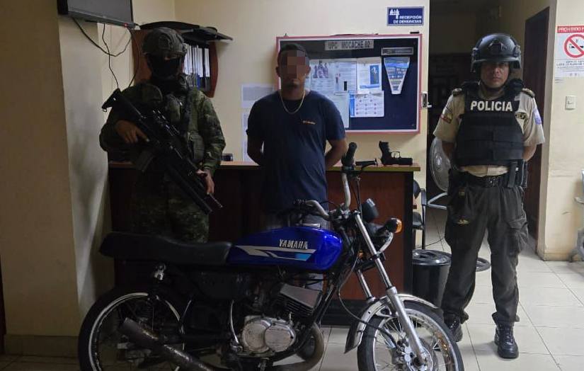 El Grupo Especial de Comandos N.° 9, cumpliendo operaciones militares de ámbito interno en la provincia de Los Ríos, cantón #Mocache, escucharon una detonación de arma de fuego, por lo cual el personal militar se dirigió hacia el sector de Barrio Lindo, donde se originó el disparo. Los militares identificaron a un sujeto portando un arma de fuego y después de una persecución lograron aprehenderlo. El aprehendido, 1 pistola traumática, 1 alimentadora, municiones y 1 motocicleta se entregaron a las autoridades competentes para los trámites legales correspondientes.