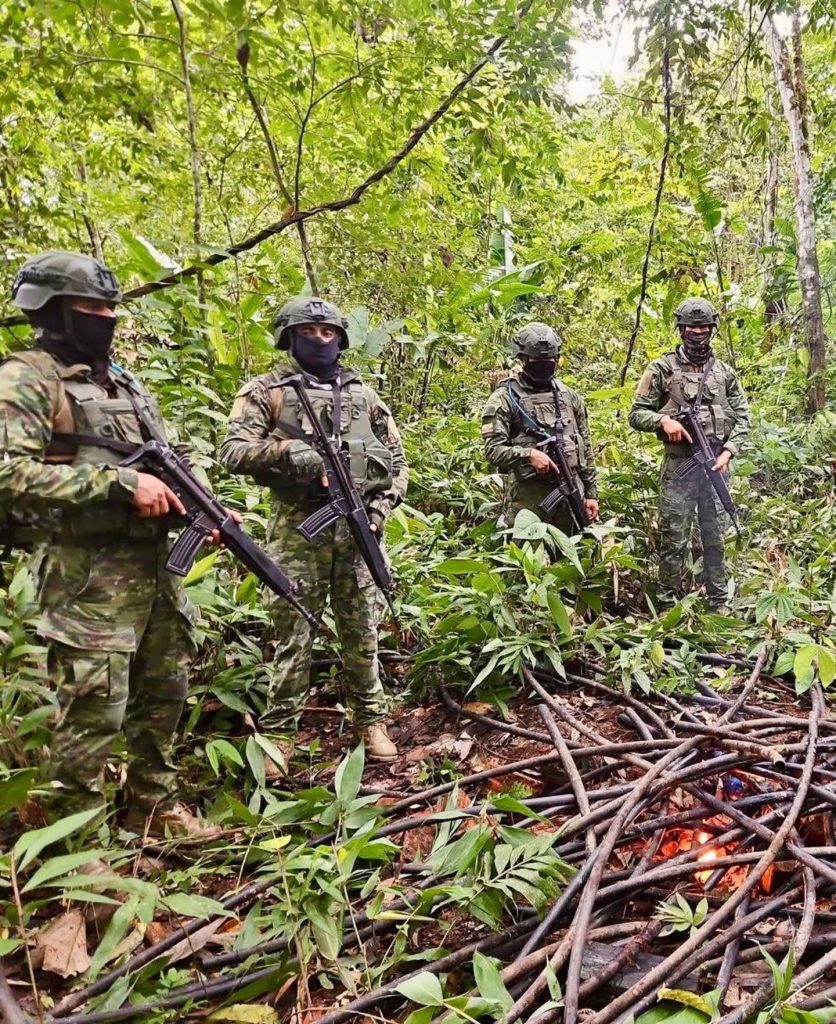 Gracias a información de inteligencia militar, el Ejército Ecuatoriano, en coordinación con las Fuerzas Militares de Colombia, localizó una infraestructura utilizada para el refinamiento artesanal de crudo de petróleo en el sector de Santa Elena, cantón #Putumayo.