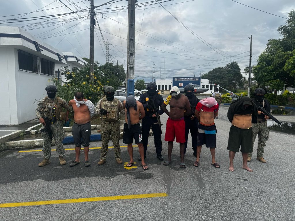 La Armada del Ecuador a través del Comando de Guardacostas mediante el empleo del Grupo de Operaciones Marítimas (GOPMAR) aprehendió a cinco sujetos con actitud sospechosa, mismos que al observar la presencia militar se escondieron en una camaronera del Golfo de Guayaquil, al realizar la inspección del área se puedo encontrar bajo su poder el siguiente material: