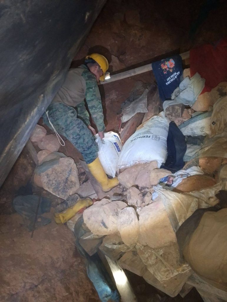 Efectivos del Grupo de Caballería Blindada N.º 4 Febres Cordero, realizó el registro en el interior de una boca mina, ubicada en la zona de exclusión minera, en el sector El Calvario, cantón Zaruma, donde se encontró: sacos de 50 kg de nitrato de amonio, explosivos Emulgel, más de un centenar de trozos de mecha lenta armadas con cápsulas detonantes y gran cantidad de tacos de nitrato de amonio. En la operación militar contra la minería ilegal se encontró además cientos de metros de mecha lenta y herramientas, por lo que, el material decomisado fue entregado a las autoridades competentes.