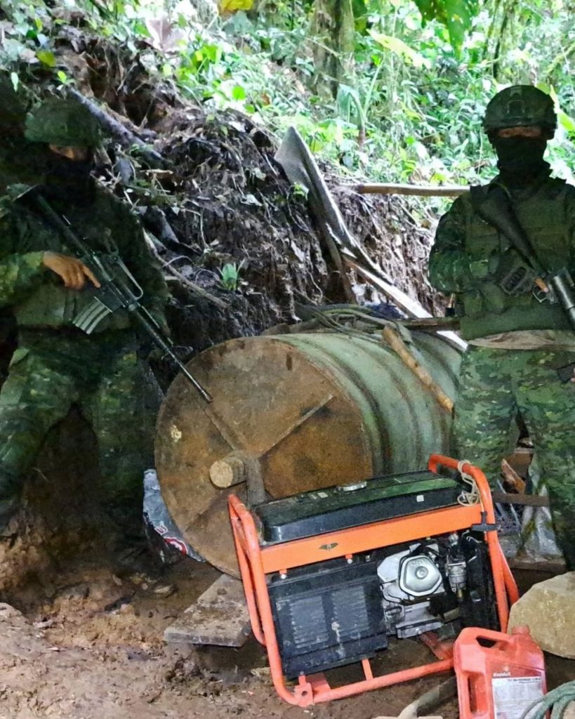 En una operación militar estratégica desarrollada en el cantón Tulcán, el personal militar logró identificar e inhabilitar cinco bocaminas, una planta procesadora de material aurífero y múltiples elementos utilizados en la minería ilegal.